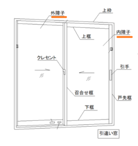 専門的には、窓の**「障子」とは、ガラスがはめ込まれている、開け閉めする部分全体のことを指します。